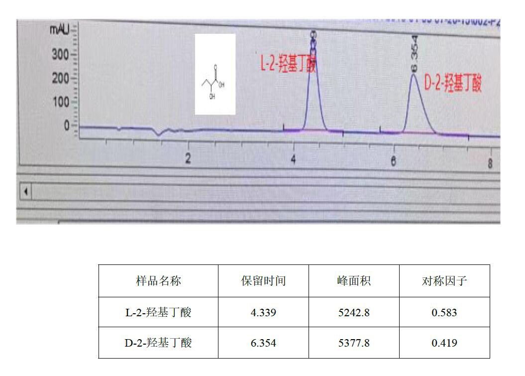 App ID: FLM-B250018 D, L-2-羥基丁酸手性拆分 色譜柱:Chiral AAOA 3μ 50×4.6mm (FMB-AAOA3-EONU) 流動(dòng)相:2mM CUSO4 水溶液:異丙醇=95:5 流速:1 mL/min 波長:230nm 溫度:25℃ ![]() |