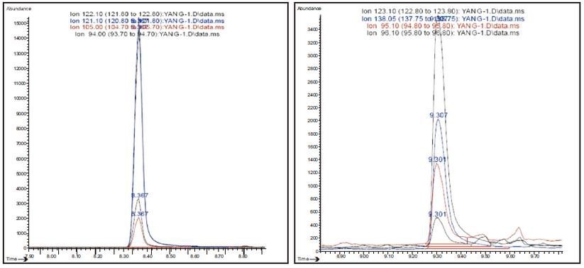 本實驗利用固相支持液液萃取法作為樣品的前處理方法,GC-MS 法作為檢測手段。該方法可簡化樣品的前處理過程,節省有機溶劑的用量。